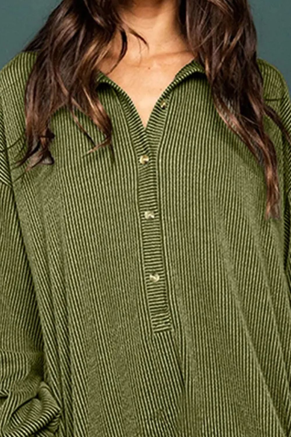 Half Button Collared Neck Long Sleeve Dress S-XL